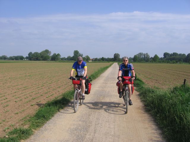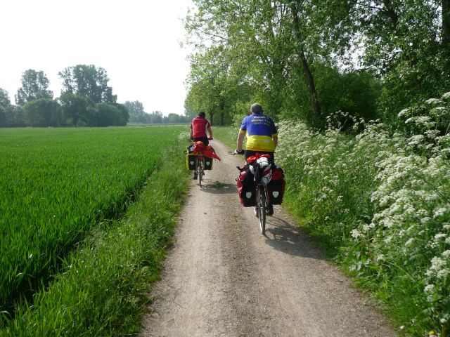Vanochtend met een goed ontbijt achter de kiezen vertrokken uit Horn. Al snel de Duitse grens bereikt bij Effeld. De route liep vandaag grotendeels langs de Rur/Roer over oude jaagpaden (onverhard maar goed te doen).