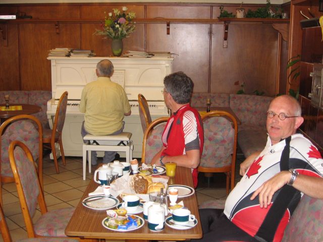 Na eerst een pianoconcert bij het ontbijt van de hoteleigenaar zijn we met enige vertraging gestart richting Heidelberg. Het hotel is tevens een bakkerij, dus met de tas vol broodjes vertrokken. In Heidelberg gestopt voor een koffiepauze bij Havana (in de oude Stadthalle).