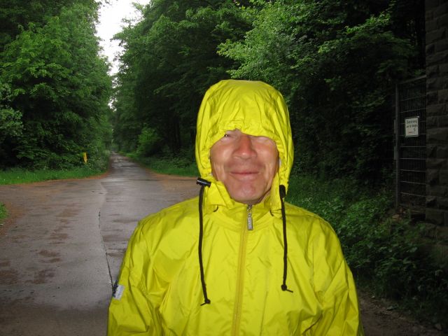Vanochtend vanuit Euskirch vertrokken met hier en daar een spat regen en windstil. Na een uur begon het echter te regenen en dat is niet meer gestopt. De hele dag in regenjas en overschoenen.