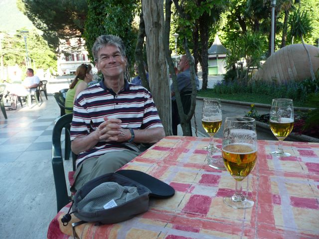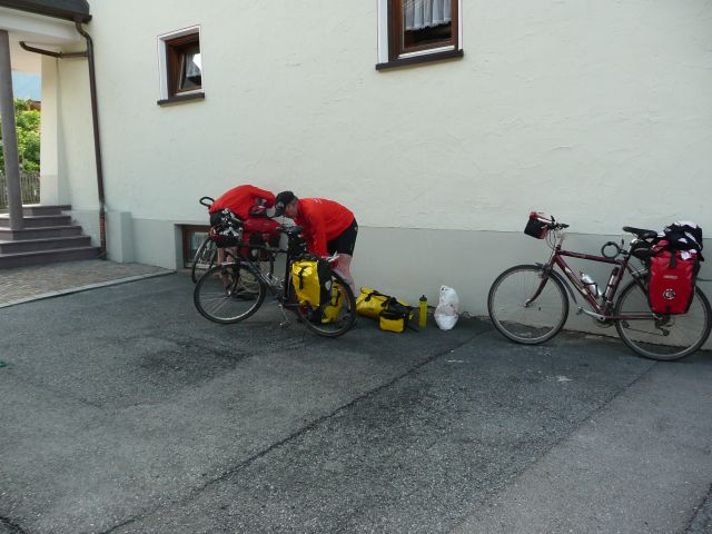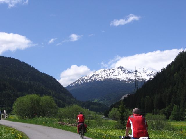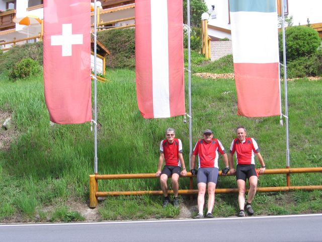 Vetrokken uit Pfunds voor de beklimming van de Norberts Höhe en de Reschenpas. Het is prachtig weer, met schitterende vergezichten. Na de Reschenpas passeren we de italiaanse grens, na 's ochtends nog even kort door Zwitserland te zijn gereden. Het is erg druk met motoren op de weg. Mooie route langs de Reschensee en daarna alleen maar afdalen richting Merano, waar we onderdag vinden in 'villa Capri', een oude vervallen italiaanse villa met dito eigenares. Slechte bedden, beroerd sanitair, krakende vloeren, kortom het echte vakantiegevoel!