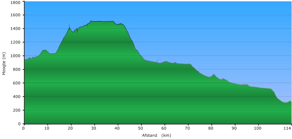 parcoursomstandigheden: Na flinke klim een hele lange afdaling