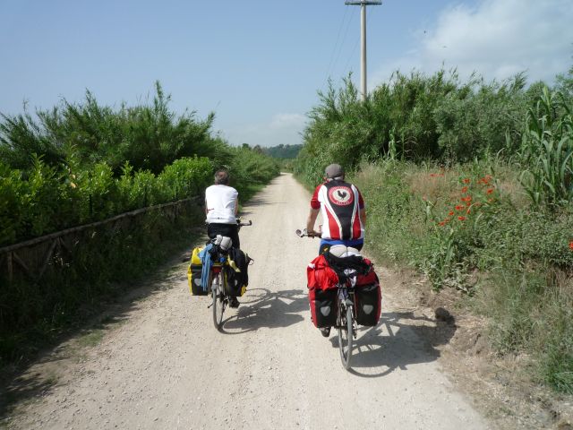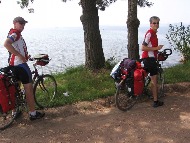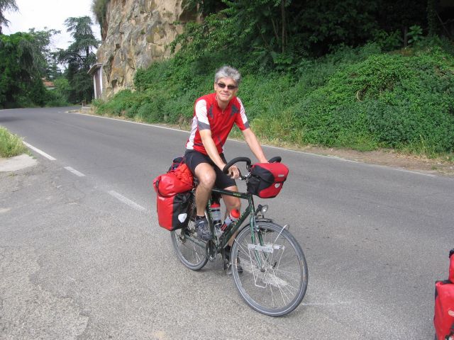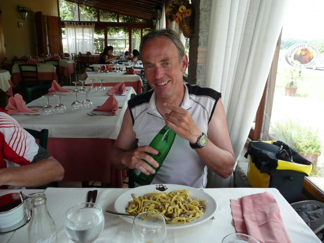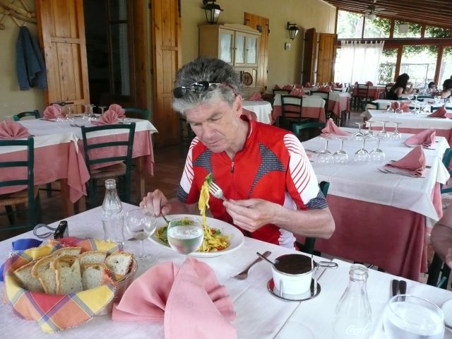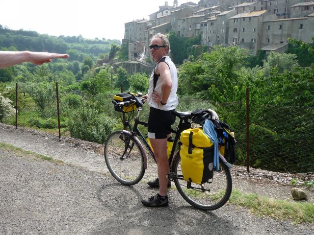 Vanochtend uit onze privé kroeg vertrokken na een zelf gemaakt ontbijt. We worden door de eigenaar uitgezwaaid. Na het vele klimwerk van gisteren gaat het vandaag een stuk makkelijker. Wel gedurende de hele dag af en toe een klimmetje, maar toch voornamelijk bergaf. We passeren het Lago di Bolsena (koffie) en later het Lago di Vico. We fietsen de Toscane uit en de provincie Lazio binnen. Rome ligt binnen handbereik. Veel hazelnoot plantages in deze omgeving.We komen langs prachtige italiaanse stadjes. Bij het Lago di Vico vinden we in Ronciglione een kamer bij het lokale hotel.