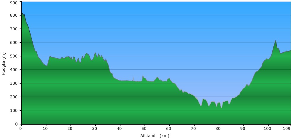 parcoursomstandigheden: Veel dalen, de vruchten van de dag van gisteren, en laatste 20 km gingen gelijkmatig omhoog..