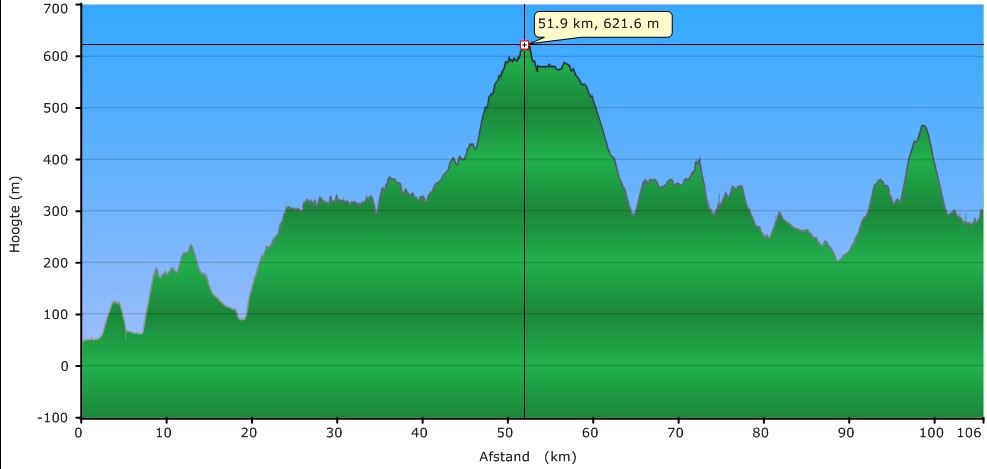 parcoursomstandigheden: Klimmen, dalen, klimmen, dalen, klimmen, dalen, klimmen, dalen,